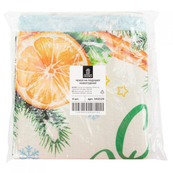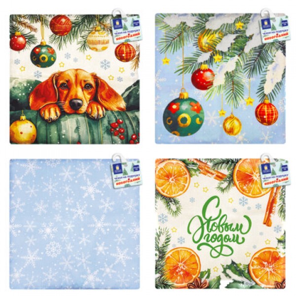 Чехол на подушку новогодний (1 шт.) 45х45 см, 'X-mas Magic', полиэстер, ассорти 4 дизайна, ЗОЛОТАЯ СКАЗКА, 592529