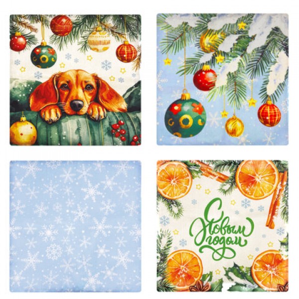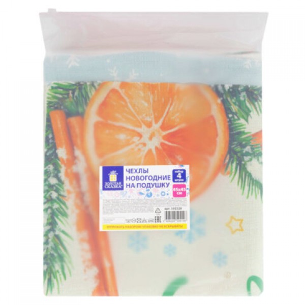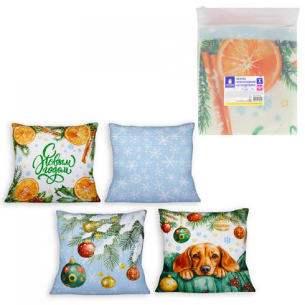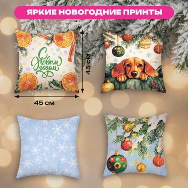 Чехол на подушку новогодний, НАБОР 4 шт., 45х45 см, 'X-mas Magic', полиэстер, ЗОЛОТАЯ СКАЗКА, 592528