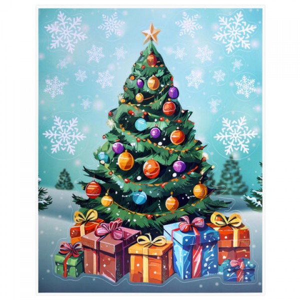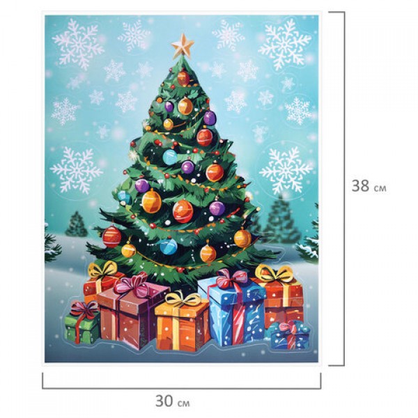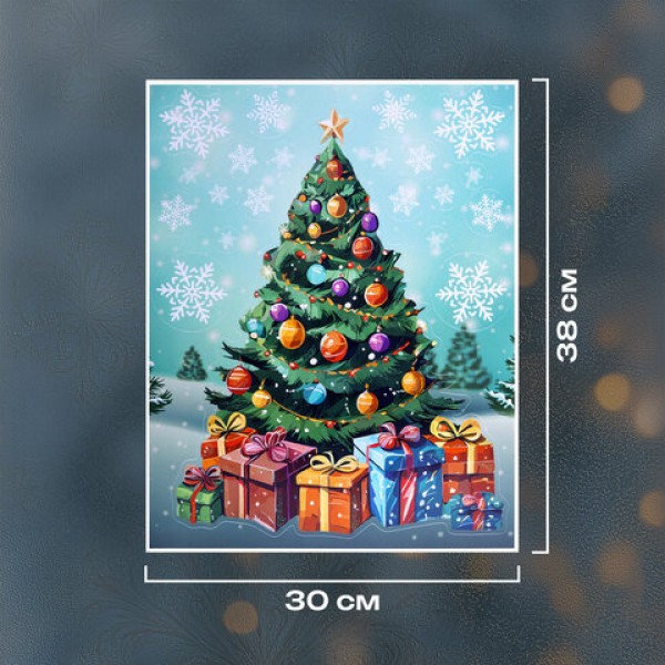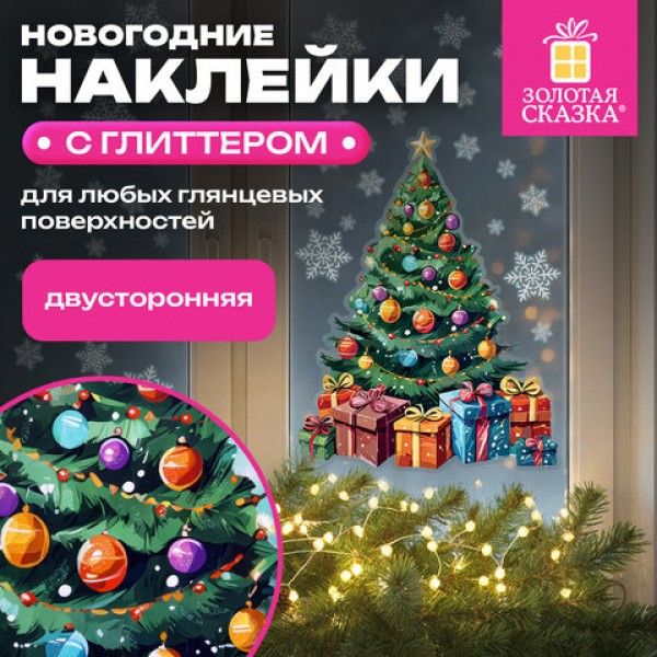 Наклейка для окон двусторонняя, 30х38 см, 'Новогодняя ель', глиттер, серебро, ЗОЛОТАЯ СКАЗКА, 592577