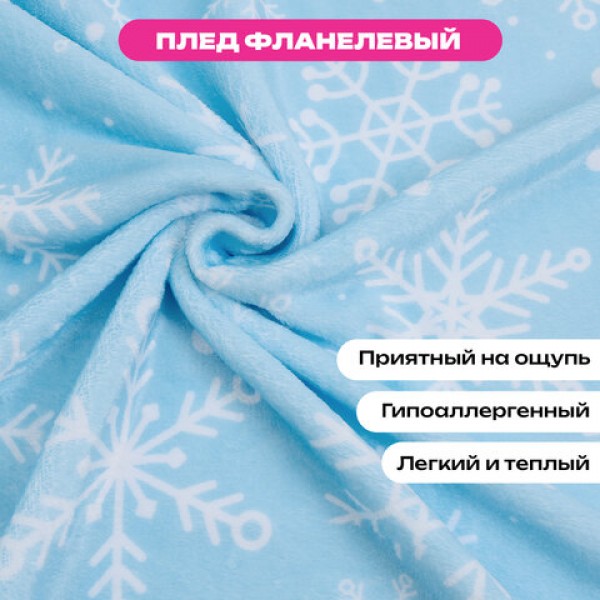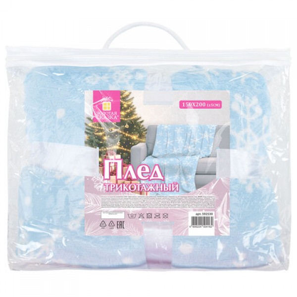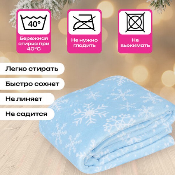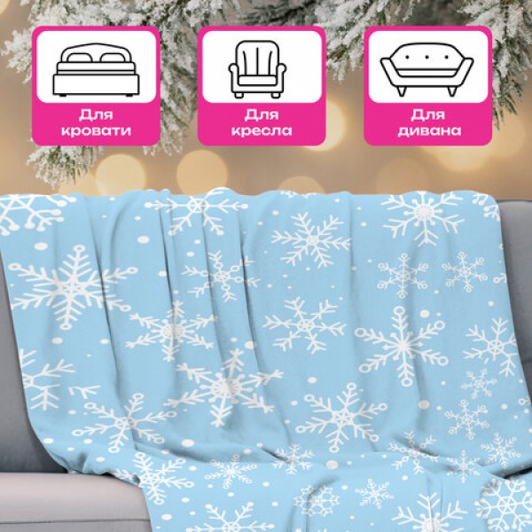Плед новогодний, 150х200 см, 'Снежинки', полиэстер, 210 г/м2, ЗОЛОТАЯ СКАЗКА, 592530