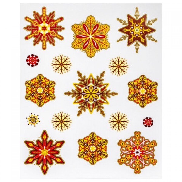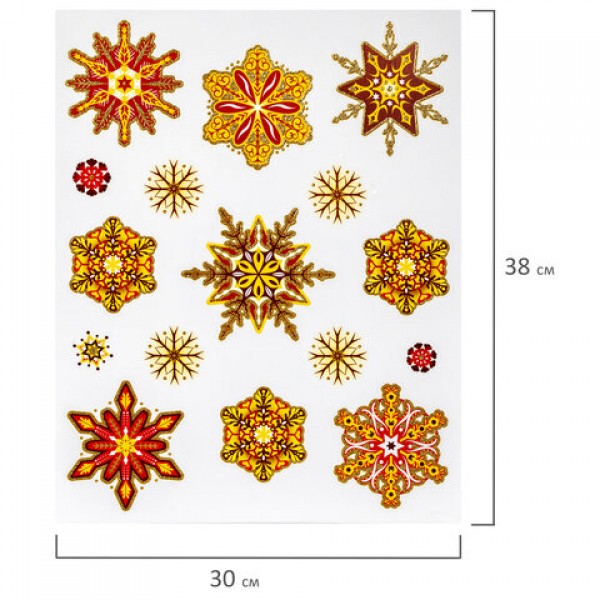 Украшение для окон и стекла ЗОЛОТАЯ СКАЗКА 'Красно-золотые снежинки 2', 30х38 см, ПВХ, 591208