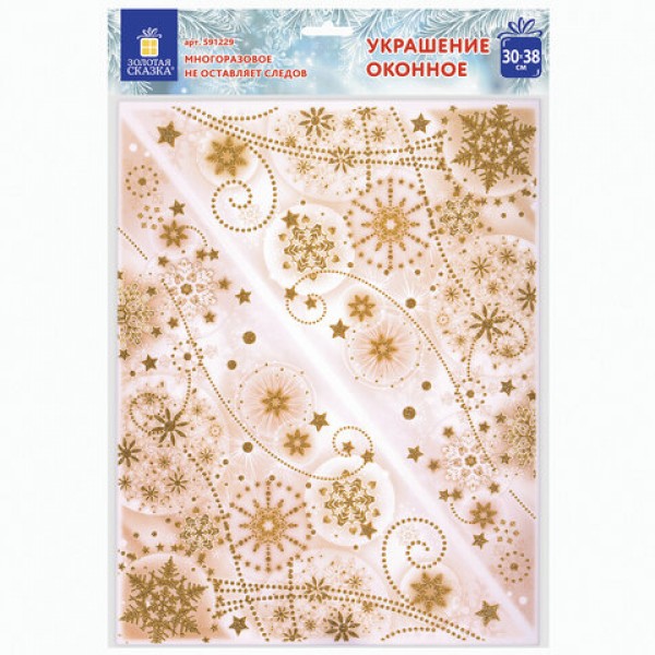 Украшение для окон и стекла ЗОЛОТАЯ СКАЗКА 'Узоры из золотых снежинок 3', 30х38 см, ПВХ, 591229