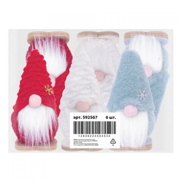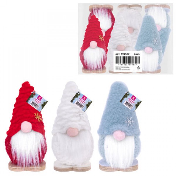 Украшение новогоднее интерьерное, 12 см, 'Гномики', полиэстер/пенопласт, ассорти, ЗОЛОТАЯ СКАЗКА, 592567