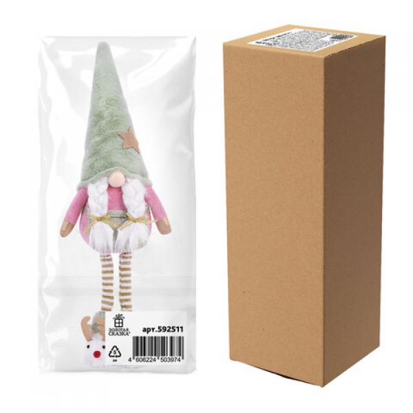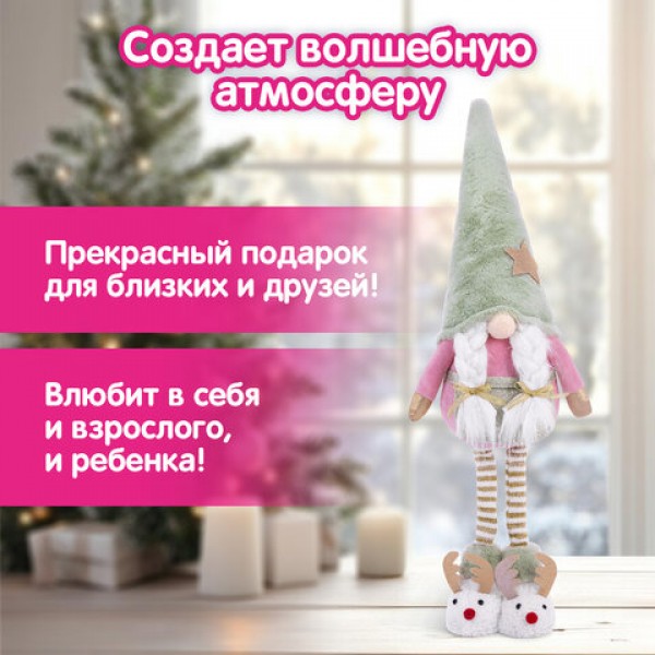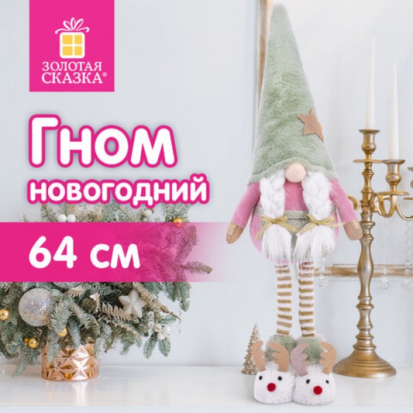 Украшение новогоднее интерьерное 64 см 'Гном в тапочках', полиэстер, ЗОЛОТАЯ СКАЗКА, 592511