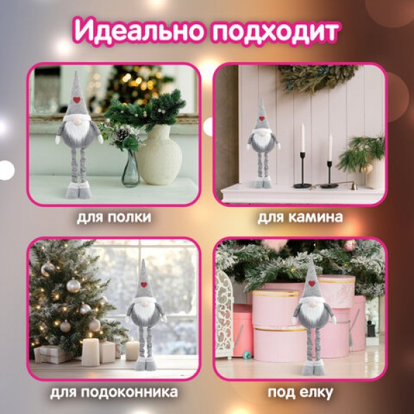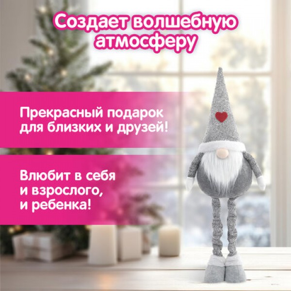 Новый год – это время чудес и радости! Новогоднее интерьерное украшение "Гном Милаш" ЗОЛОТАЯ СКАЗКА с телескопическими ножками идеально впишется в Ваш праздничный декор, создавая уют и атмосферу волшебства, которая согреет сердца Ваших близких.