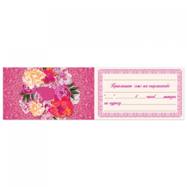 Приглашение на торжество 70х120 мм (в развороте 70х240 мм), 'Цветы', выборочный лак, ЗОЛОТАЯ СКАЗКА, 128939