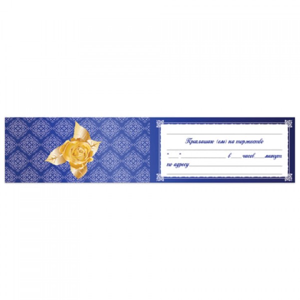 Приглашения на торжество ЗОЛОТАЯ СКАЗКА – незаменимый атрибут праздничного события. Благодаря стильному дизайну вы сможете торжественно сообщить близким, друзьям и коллегам о предстоящей церемонии.