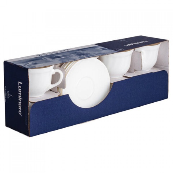 Набор чайный на 6 персон, 6 чашек объемом 220 мл и 6 блюдец, белое стекло, 'Trianon', LUMINARC, E8845