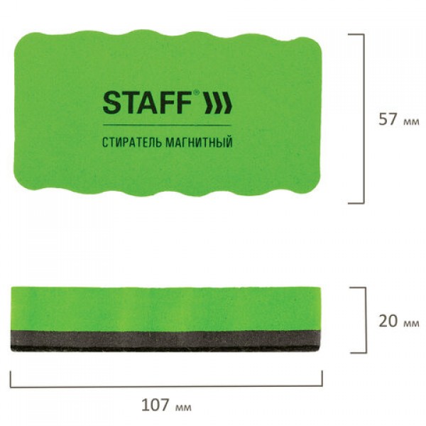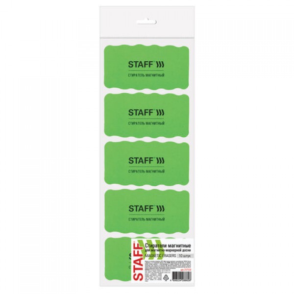 Стиратели магнитные для магнитно-маркерной доски, 57х107 мм, КОМПЛЕКТ 10 ШТ., STAFF 'Basic', зеленые, 237510