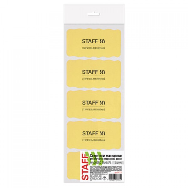 Стиратели магнитные для магнитно-маркерной доски, 57х107 мм, КОМПЛЕКТ 5 ШТ., STAFF 'Basic', желтые, 237511