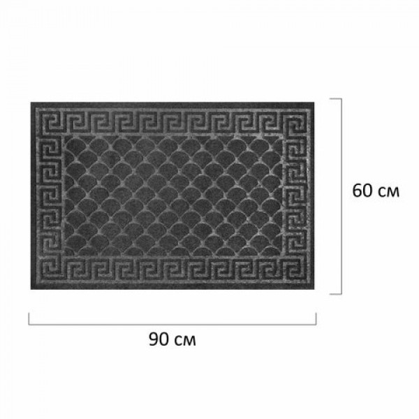 Коврик придверный 60х90 см, СЕРЫЙ, грязезащитный, 430 г/м2, фактурный рисунок ЧЕШУЙКИ, ЛЮБАША, 701061