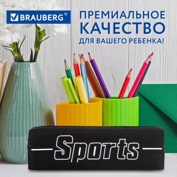 Пенал BRAUBERG, 1 отделение, полиэстер, 'Sport', черный, 19х4х6 см, 270267