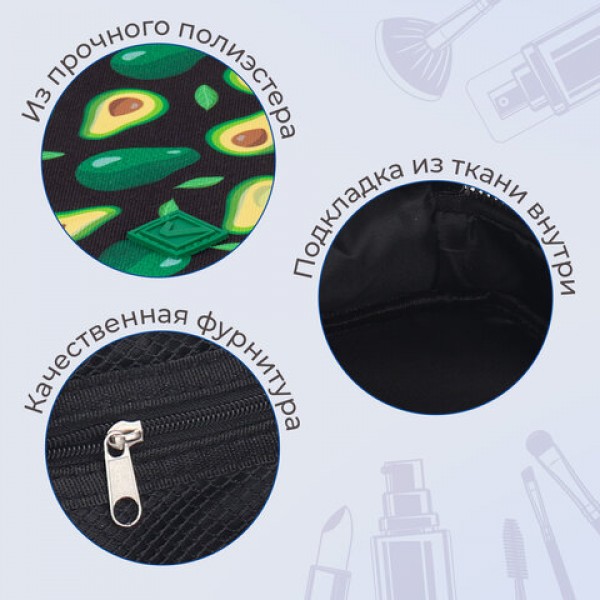 Пенал-косметичка BRAUBERG БОЛЬШОЙ, 1 отделение, 1 откидная планка, ткань, 21x15x6 см, 'Avocado', 270706