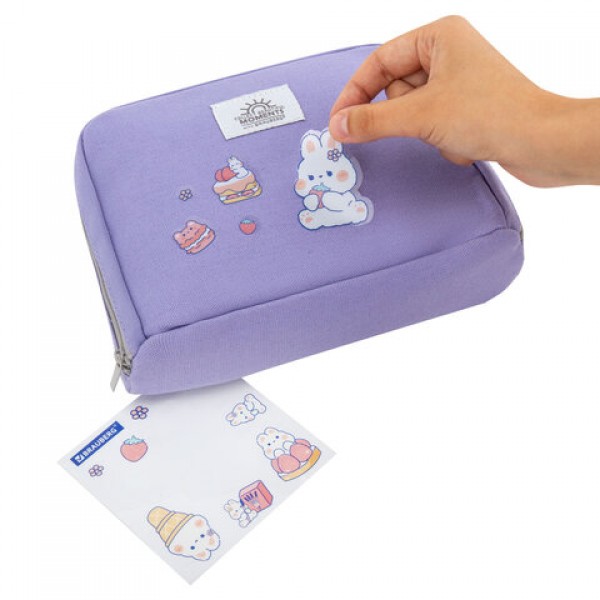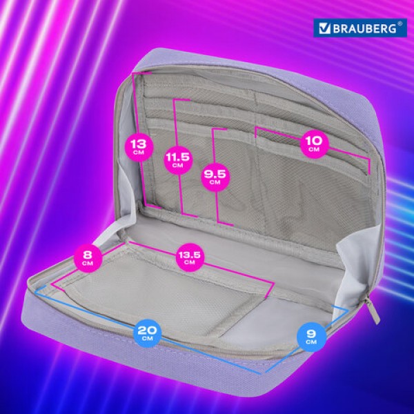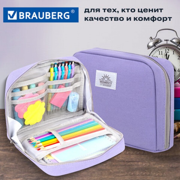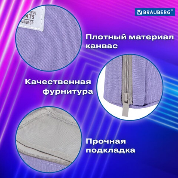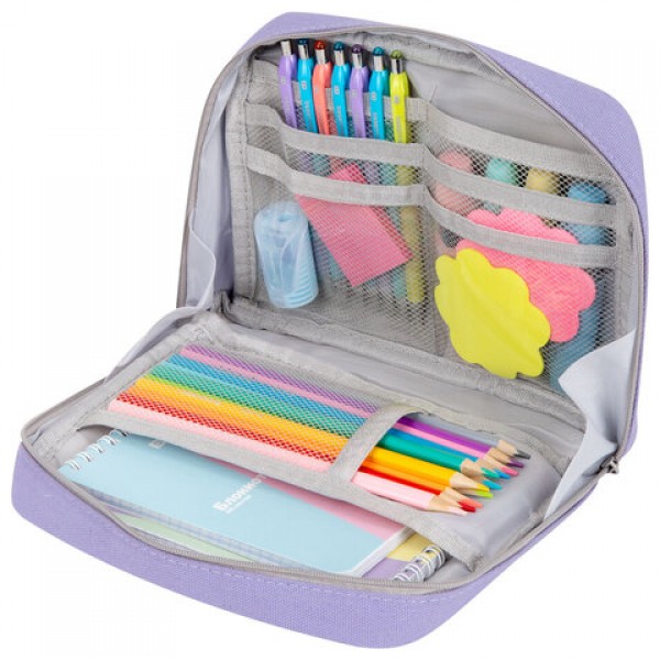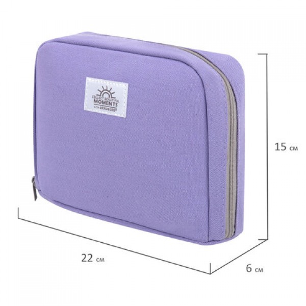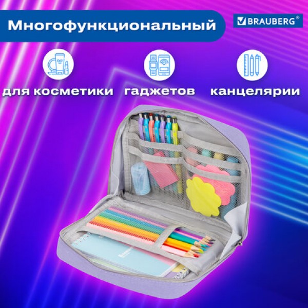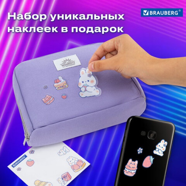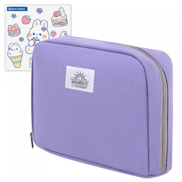 Пенал-органайзер BRAUBERG, 1 отделение, С НАКЛЕЙКАМИ, молния вокруг, канвас, 22x15х6 см, фиолетовый, 273594