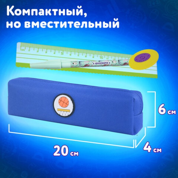 Пенал ЮНЛАНДИЯ ЮНИОР, 1 отделение, полиэстер, аппликация, 'Basketball', 20х6х4 см, 273798