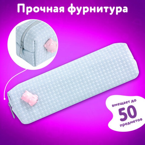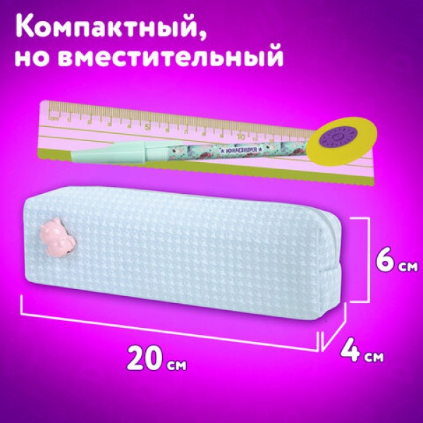 Пенал ЮНЛАНДИЯ ЮНИОР, 1 отделение, полиэстер, аппликация, 'Piggy', 20х6х4 см, 273804
