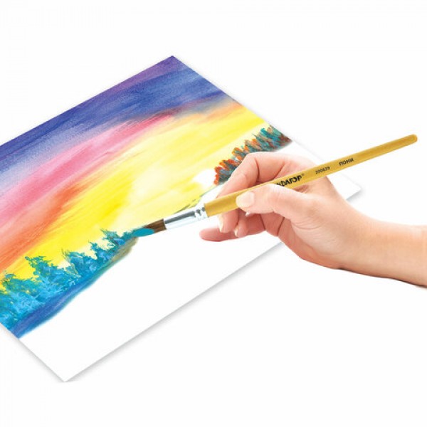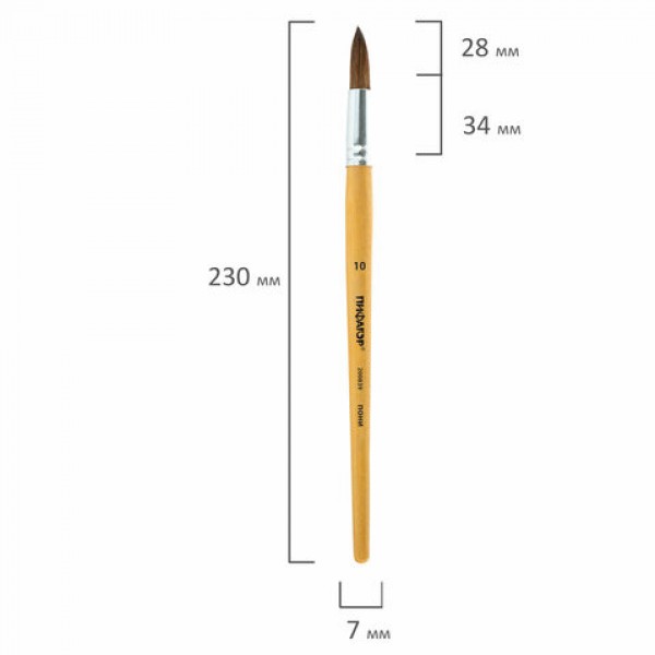 Кисть ПИФАГОР № 10 подходит для работы с акварелью, гуашью, тушью, а также для прорисовывания различных деталей рисунка. Снабжена защитным пластиковым колпачком.