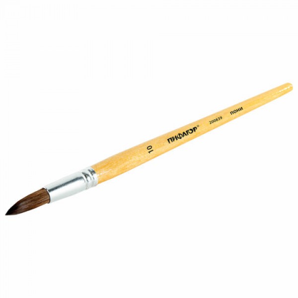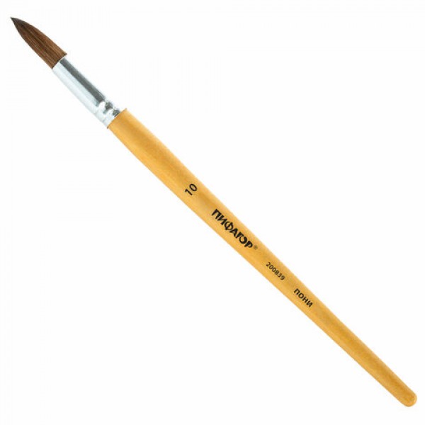 Кисть ПИФАГОР, ПОНИ, круглая, № 10, деревянная лакированная ручка, колпачок, пакет с подвесом, 200839