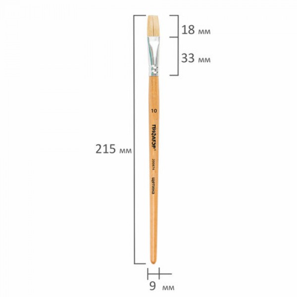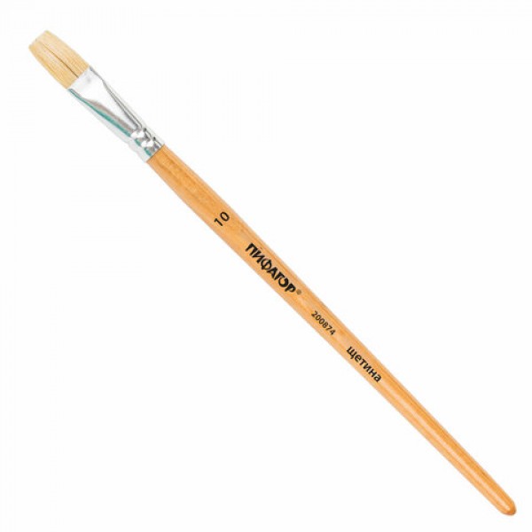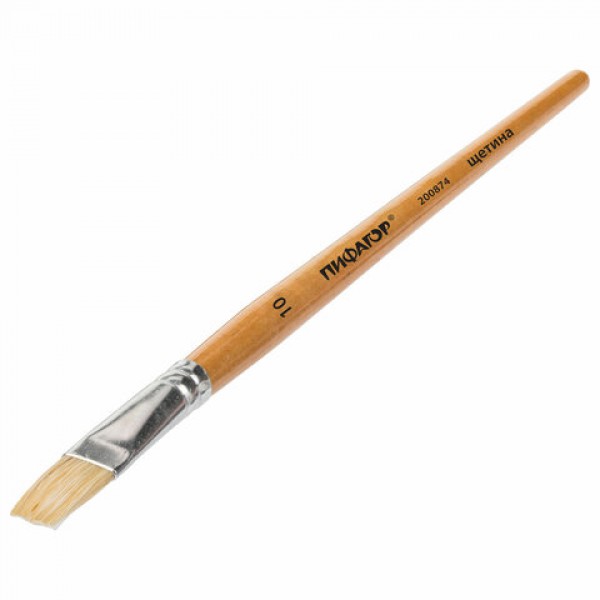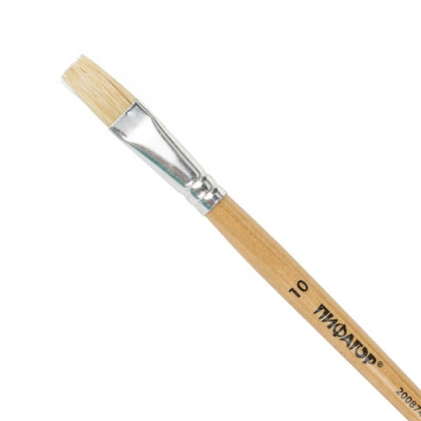 Кисть ПИФАГОР, ЩЕТИНА, плоская, № 10, деревянная лакированная ручка, пакет с подвесом, 200874