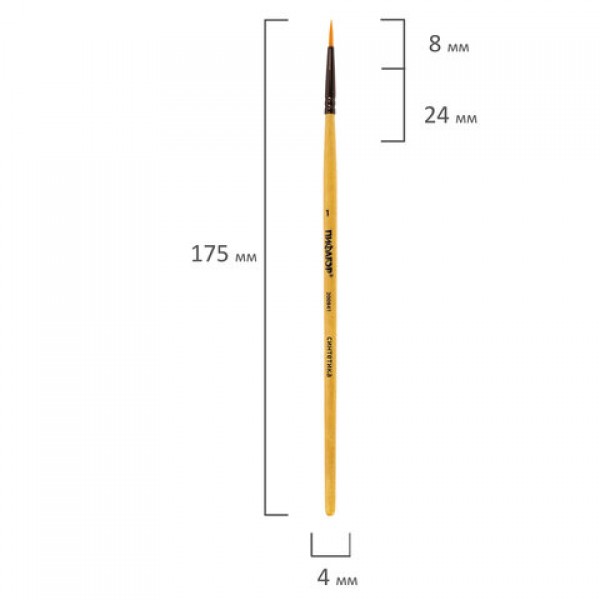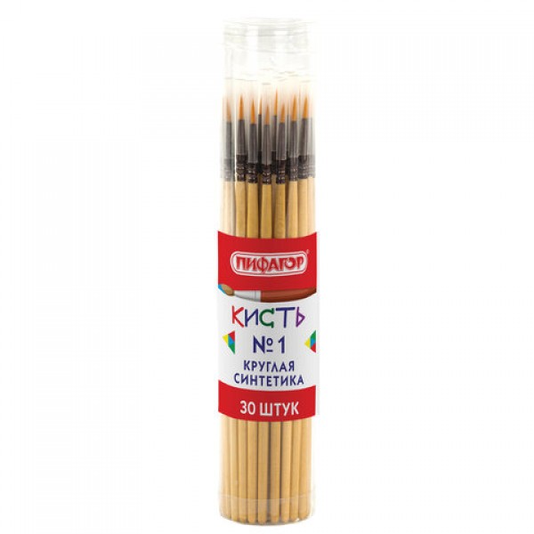 Кисть ПИФАГОР, СИНТЕТИКА, круглая, № 1, деревянная лакированная ручка, с колпачком, 200841
