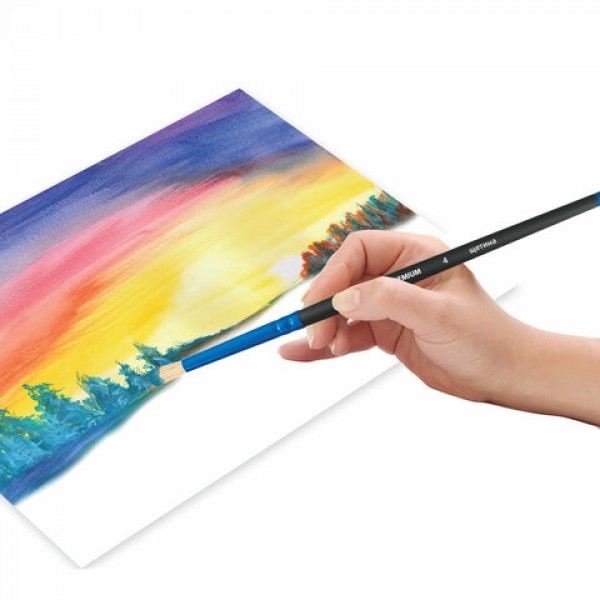 Кисть из щетины BRAUBERG PREMIUM прекрасно подходит для работы густыми красками: гуашь, акрил, масло, темпера.