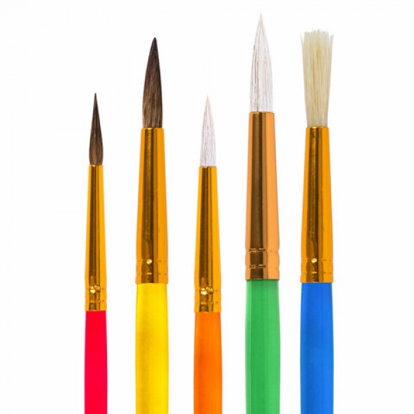 Набор из пяти кистей разного размера и типа ЮНЛАНДИЯ позволяет начинающим художникам решать любые творческие задачи в детском саду, школе и дома.