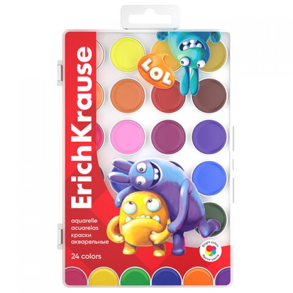 Краски акварельные ERICH KRAUSE 'Jolly Friends', 24 цвета, пластиковый пенал, европодвес, 61368