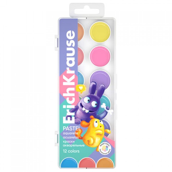 Краски акварельные ERICH KRAUSE 'Jolly Friends Pastel', 12 цветов, пластиковый пенал, европодвес, 61370