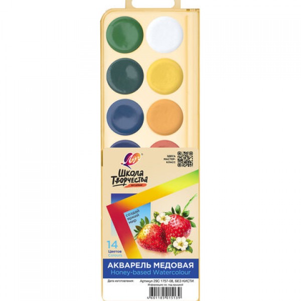 Краски акварельные ЛУЧ 'Школа творчества', 14 цветов, медовые, без кисти, пластиковая коробка, 29С 1757-08