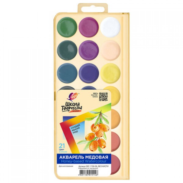 Краски акварельные ЛУЧ 'Школа творчества', 21 цвет, медовые, без кисти, пластиковая коробка, 29С 1758-08