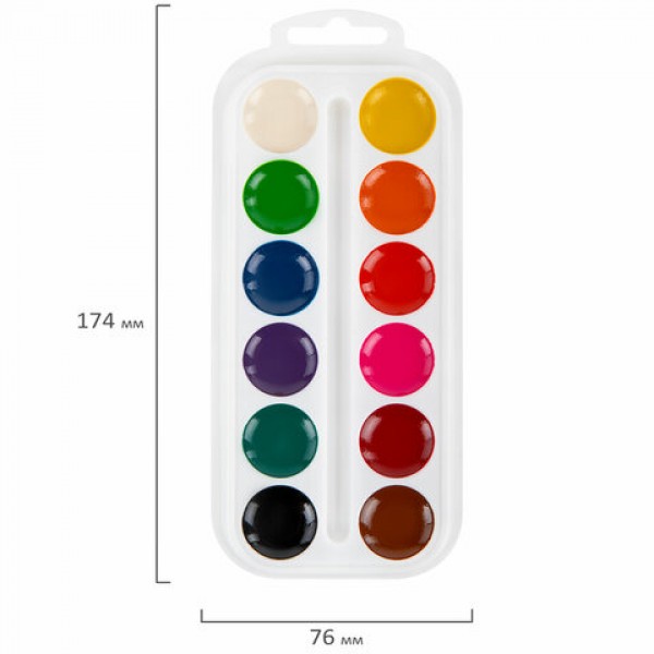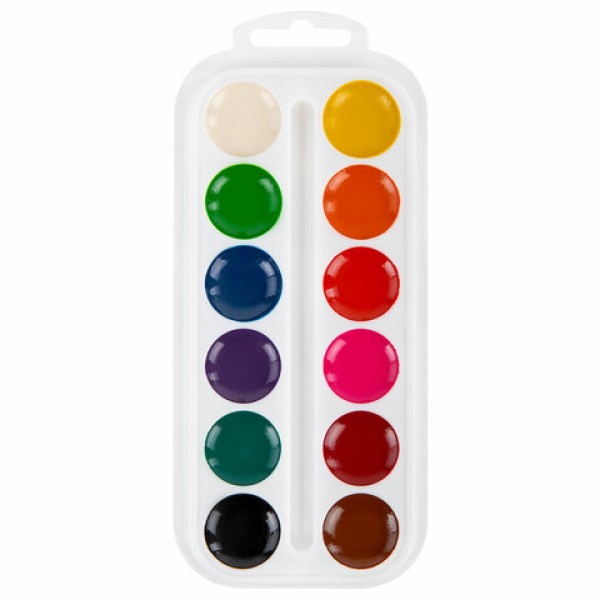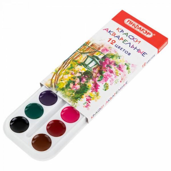 Краски акварельные ПИФАГОР 12 цветов, медовые, круглые кюветы, 192549