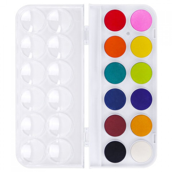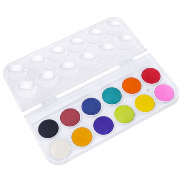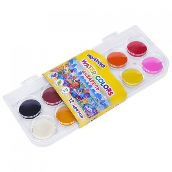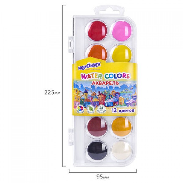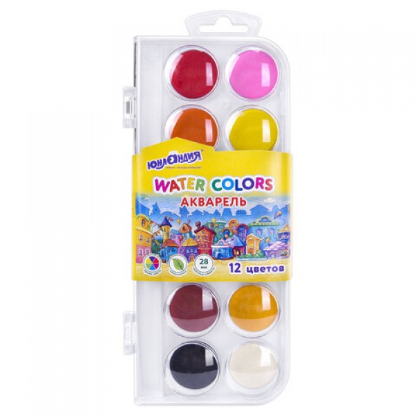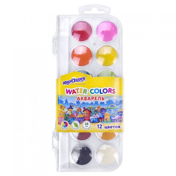 Краски акварельные ЮНЛАНДИЯ 'ДОМИКИ', 12 цветов, круглые кюветы 28 мм, пенал, 192630