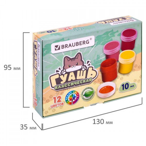 Гуашь BRAUBERG 'МИЛЫЕ КОТЫ', 12 цветов по 10 мл, 192640