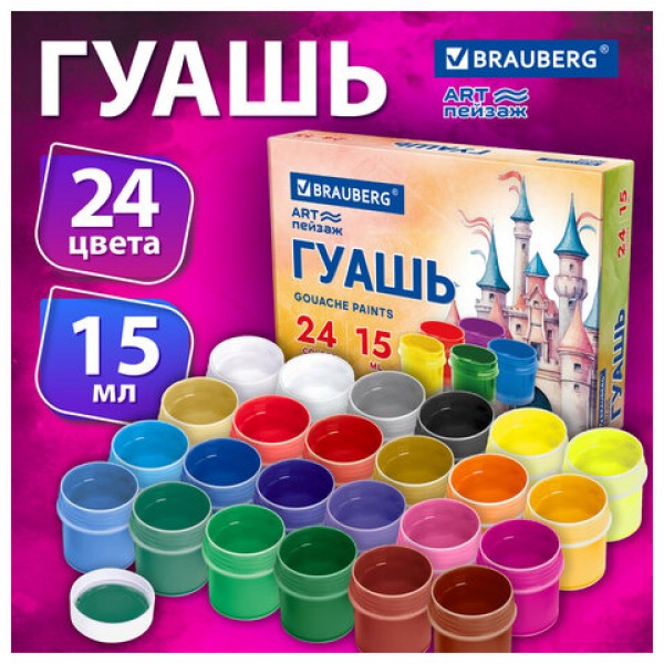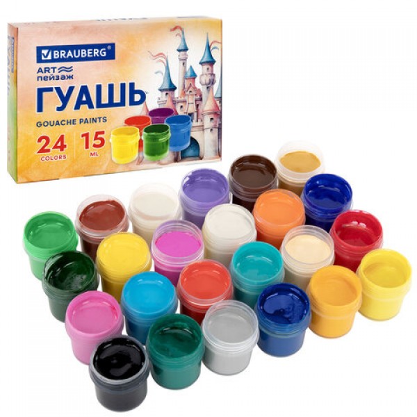 Гуашь BRAUBERG 'ЗАМОК' 24 цвета по 15 мл, 192686