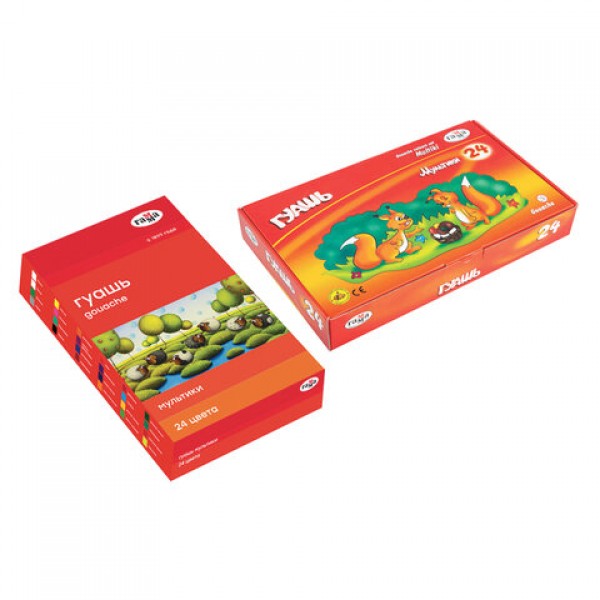Гуашь ГАММА 'Мультики', 24 цвета по 20 мл, картонная упаковка, 81220201