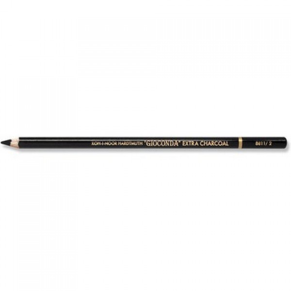 Черный угольный карандаш KOH-I-NOOR "Gioconda" с твердостью В. Мягкий сухой экстра-черный художественный материал для графических работ и набросков в форме карандаша.