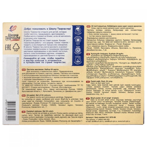 Пастель масляная ЛУЧ 'Школа творчества', 24 цвета, трехгранная, картонная упаковка, 31С 1973-08