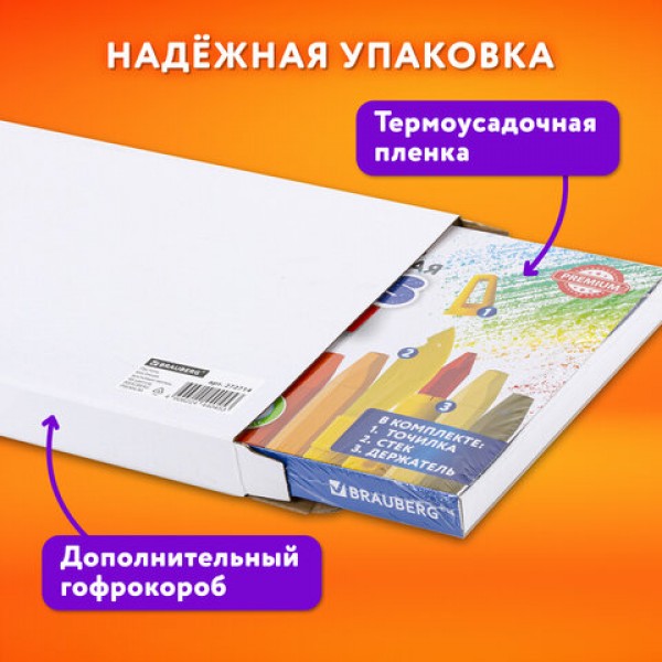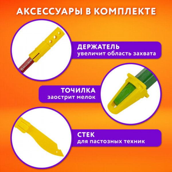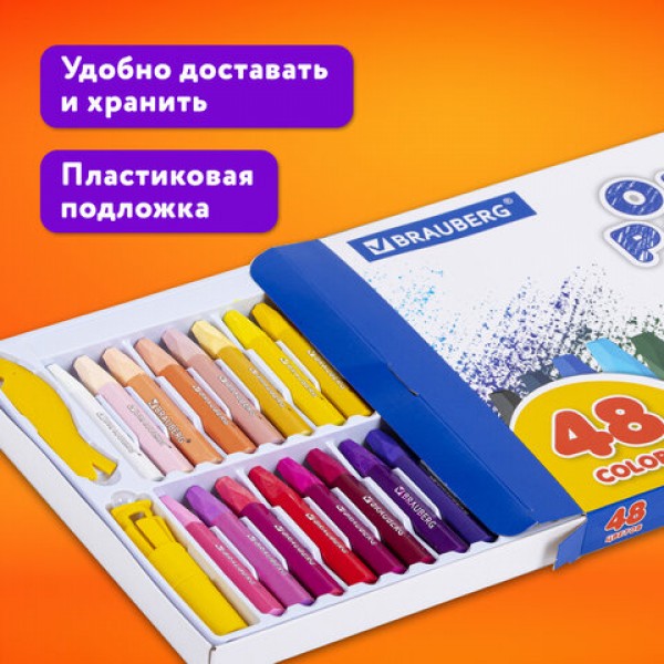 Пастель масляная восковые мелки утолщенные 48 цвета с точилкой, держателем и стеком, BRAUBERG PREMIUM, 272714