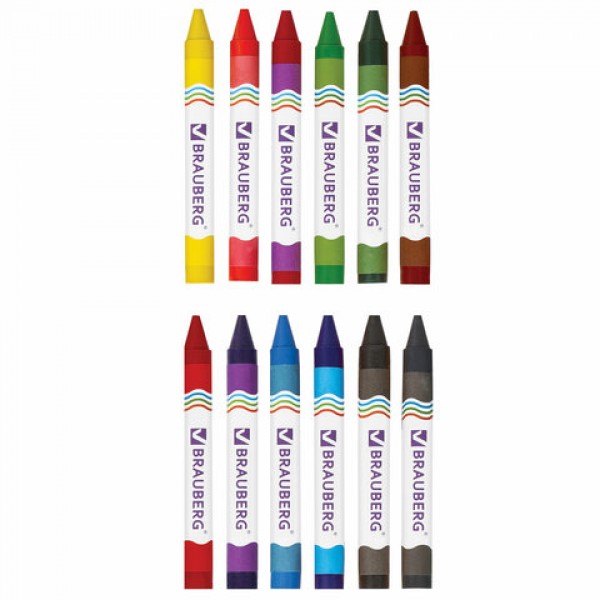 Восковые мелки утолщенные BRAUBERG, НАБОР 12 цветов, 222966