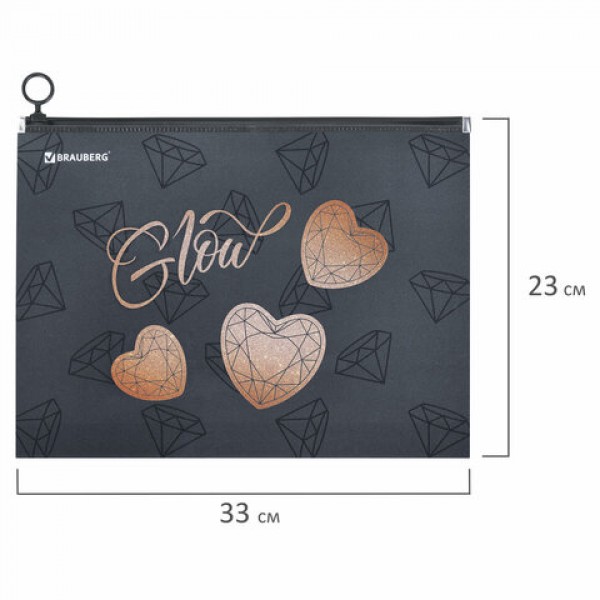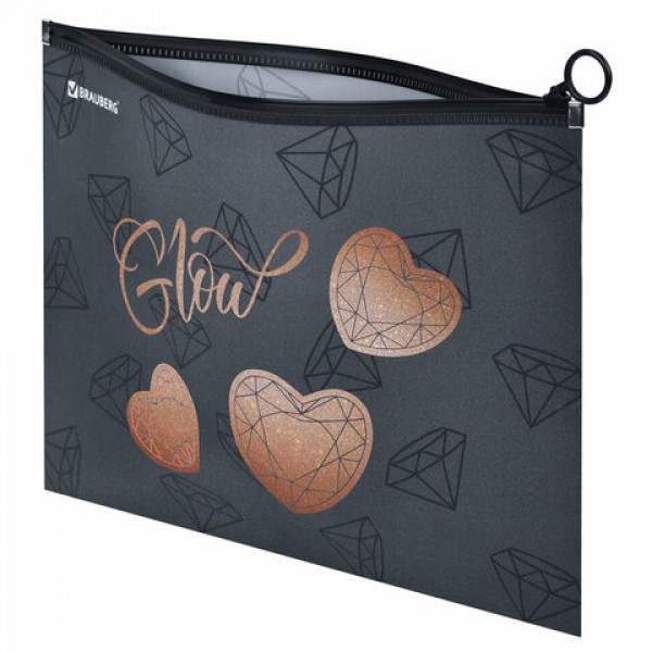 Папка для тетрадей BRAUBERG А4, 1 отделение, пластик, на zip-lock-молнии, 'Diamonds', 272104