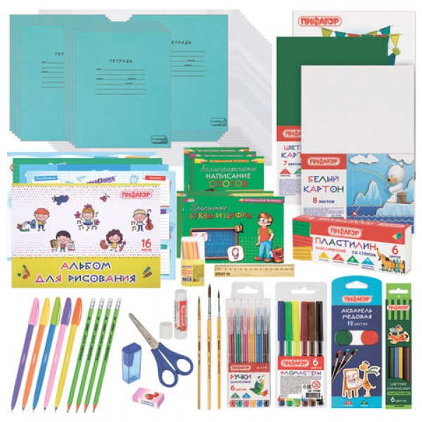 Набор канцелярских принадлежностей ПИФАГОР "ПЕРВОКЛАССНИК" для выпускников детского сада и первоклассников в красочной упаковке. Скомплектован на основе рекомендаций учителей начальных классов.
