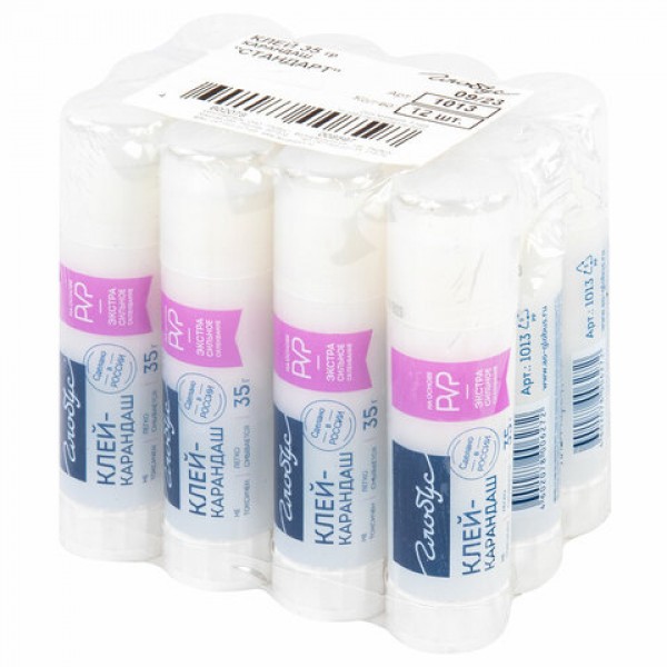 Клей-карандаш 'Стандарт', 35 г, PVP-основа, РОССИЯ, GLOBUS, 1013