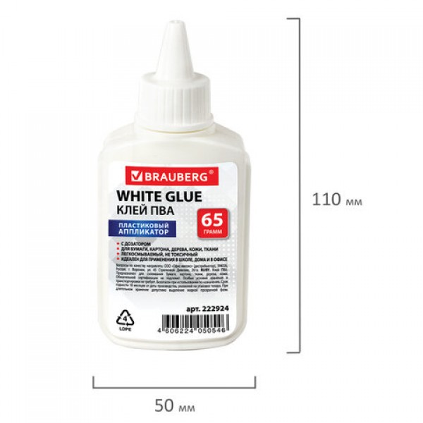 Клей ПВА BRAUBERG (бумага, картон, дерево), 65 г, 222924