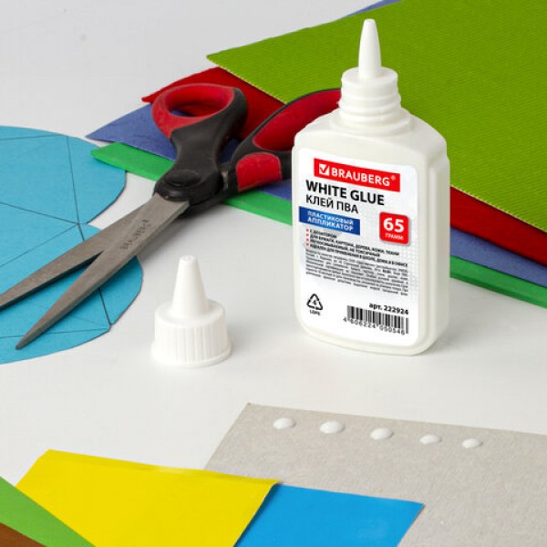 Клей ПВА BRAUBERG предназначен для склеивания бумаги, картона, фотографий, дерева и кожи.