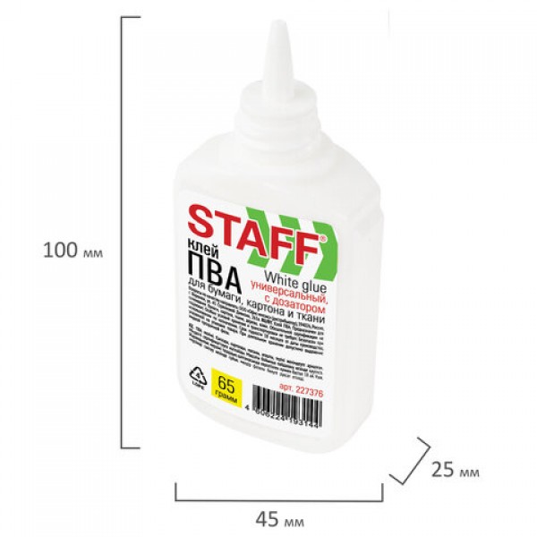 Клей ПВА STAFF EVERYDAY, 65 г, с дозатором, 227376