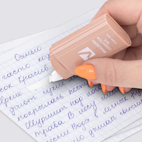 Корректирующая лента BRAUBERG COMPACT PASTEL – это незаменимый помощник для мгновенного исправления рукописных и печатных текстов. Набор из 6 штук в ПВХ-пенале в трендовых пастельных дизайнах – идеальный выбор для дома, офиса или учебы.