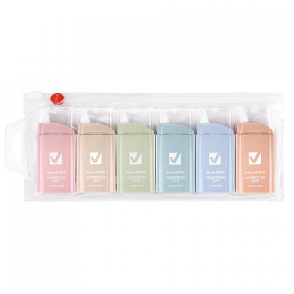 Корректирующая лента BRAUBERG COMPACT PASTEL, 5 мм х 6 м, КОМПЛЕКТ 6 штук, пенал с zip-lock, 272496