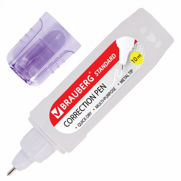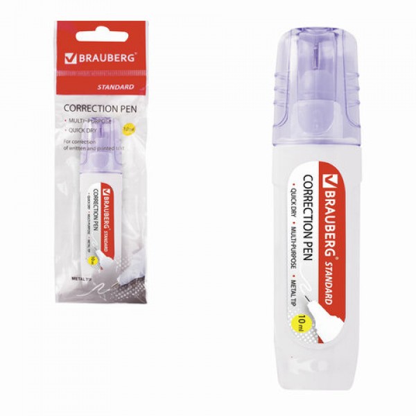 Ручка-корректор BRAUBERG предназначена для точных исправлений текста на любых типах бумаги.