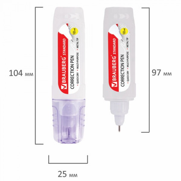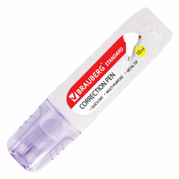 Ручка-корректор BRAUBERG, 10 мл, металлический наконечник, в упаковке с подвесом, 222059