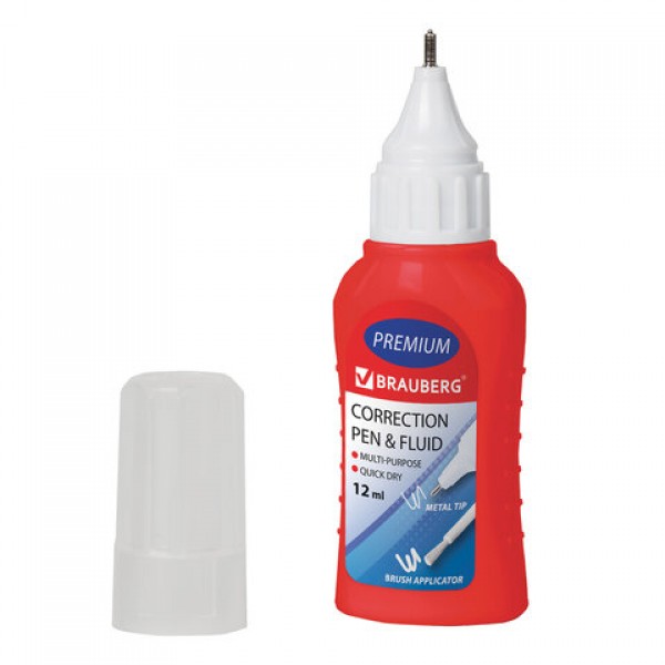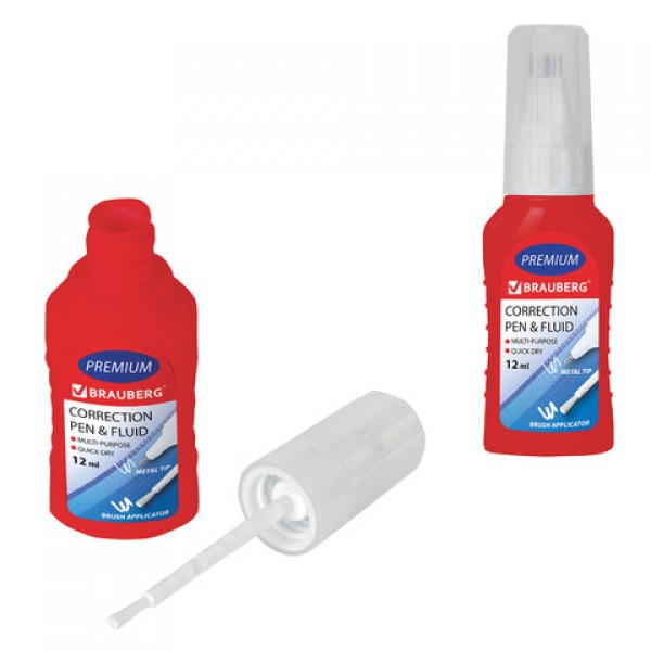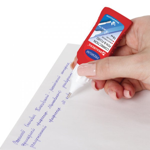 Корректирующая жидкость на быстровысыхающей основе BRAUBERG "2 в 1" справится с любыми недочетами в рукописных документах.